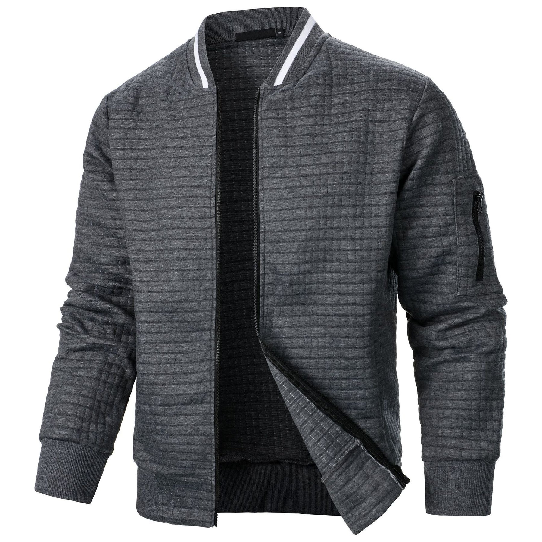 Stay warm and comfortable with a quilted bomber jacket designed for daily wear. Its soft padded interior, ribbed cuffs, and lightweight feel make it an easy layer for commuting, casual outings, and relaxed weekends. The modern square-quilt texture gives it a clean contemporary style without feeling bulky.